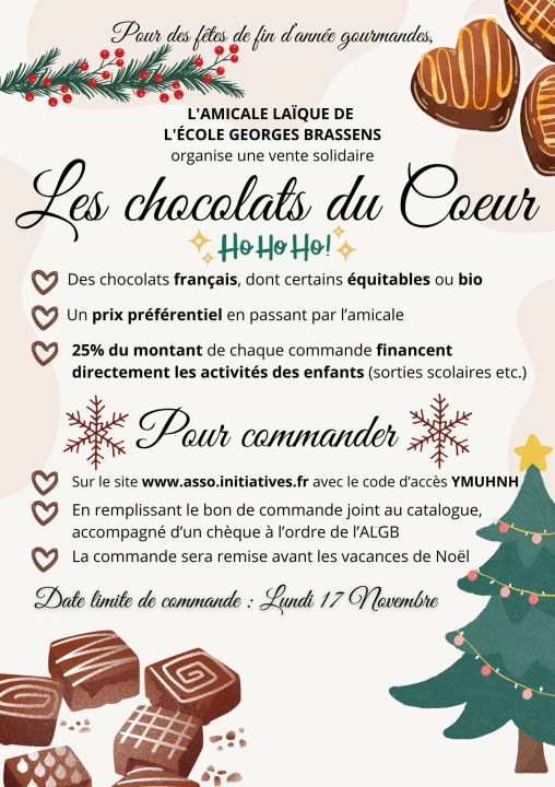 L'Amicale Laïque de l'école Georges Brassens organise une vente solidaire :« Les Chocolats du Coeur »
