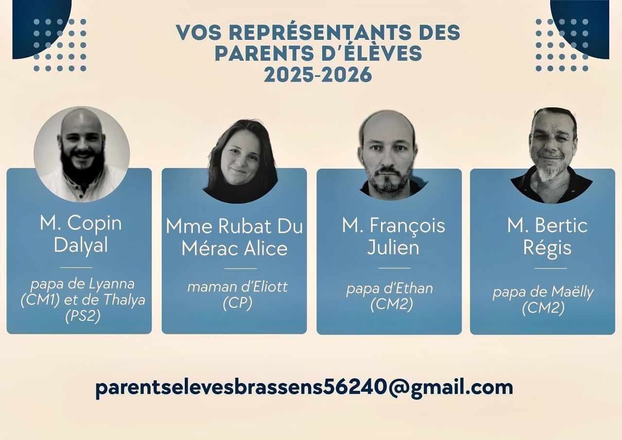 N'hésitez à contacter vos représentants parentselevesbrassens56240@gmail.com